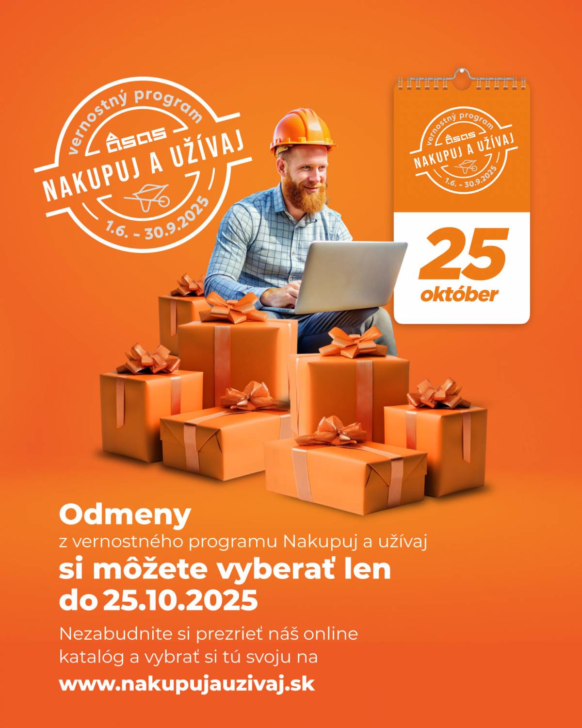 Nezabudnite – odmeny z vernostného programu Nakupuj a užívaj 2025 si môžete vyberať len do 25. októbra 2025. Po tomto dátume už nebude možné uplatniť nazbierané body. Využite preto svoju šancu a doprajte si zaslúženú odmenu včas. Nakupujte, zbierajte body a nenechajte svoje výhody prepadnúť!